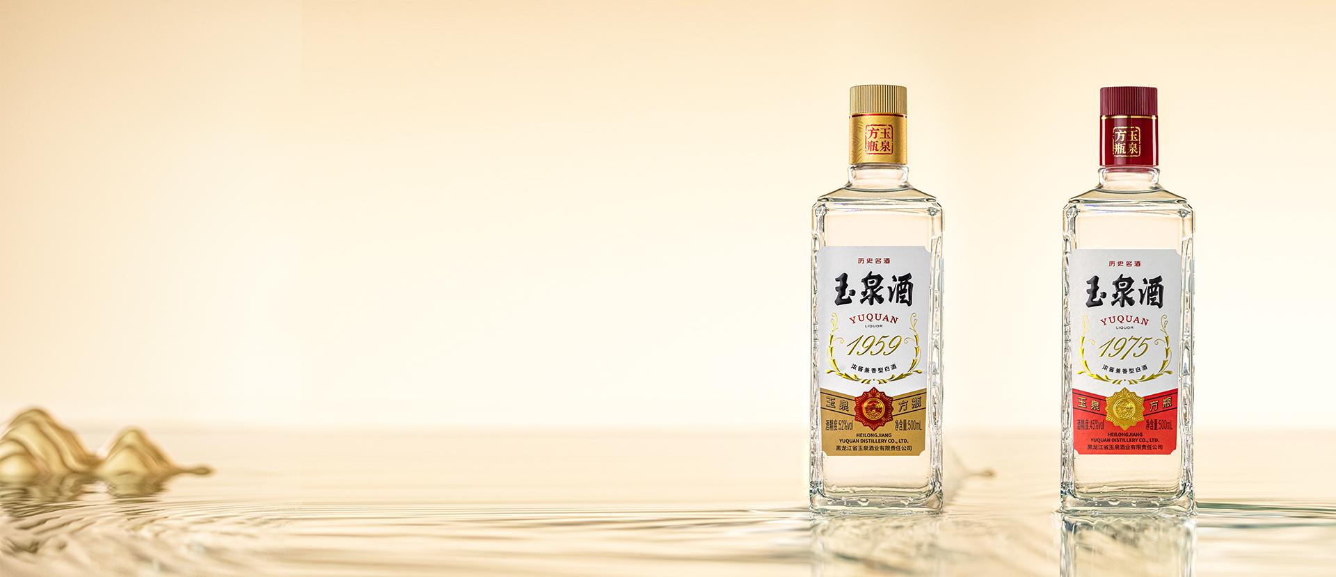 1959年由國家商業(yè)部投資、黑龍江省政府組織下,“黑龍江省玉泉酒廠”正式成立。1975年全國白酒泰斗周恒剛領(lǐng)導的全國白酒技術(shù)精英專家小組,首創(chuàng)兼香型玉泉方瓶,成為當時中國第五大白酒香型。
